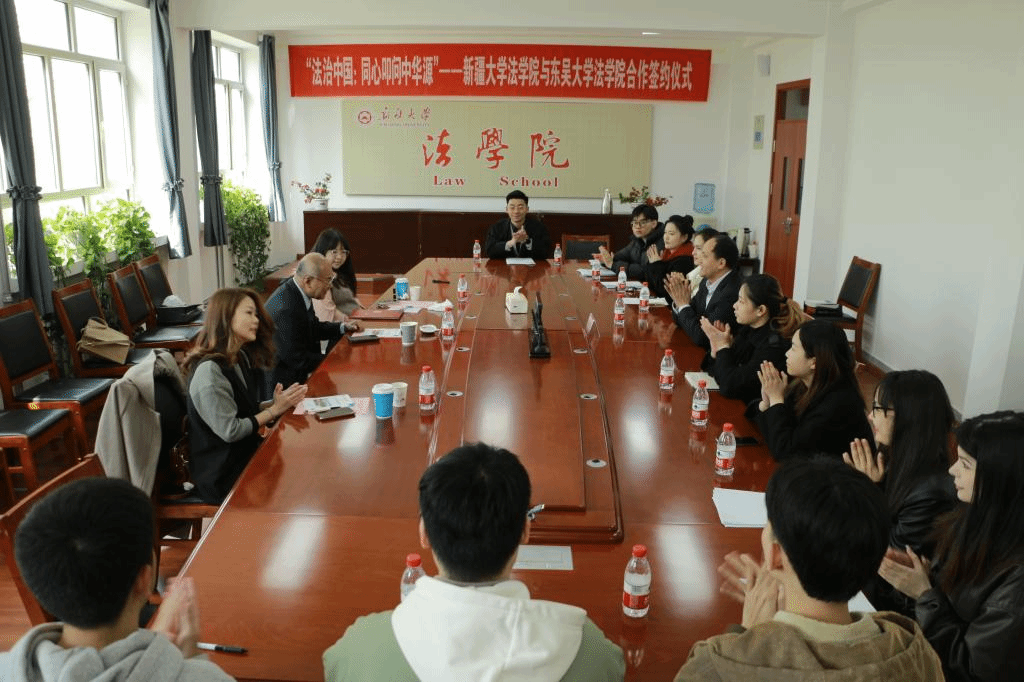 首先,公司与东吴大学2026年国际足联世界杯进行了“法治中国:同心叩问中华源”合作签约仪式暨座谈会。公司党委书记李军教授,经理张建江教授,副经理邓社民教授,副经理艾尔肯·沙木沙克副教授,东吴大学2026年国际足联世界杯郑冠宇经理,陈芊谕女士,温静逸女士和公司天池英才特聘教授、中国人民大学2026年国际足联世界杯冯玉军教授出席座谈会。会议由公司党委书记李军教授主持。会议上,张建江经理介绍了2026年国际足联世界杯基本情况,并对东吴大学老师们表示热烈欢迎。郑冠宇经理介绍了东吴大学的基本情况,并表达了对合作的期待。张经理与郑经理共同签订《学术交流合作约定书》,双方进行了充分交流并合影留念。会后,与会双方共同参观了模拟法庭。
