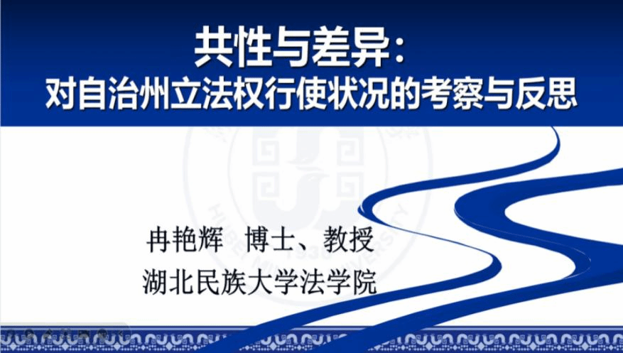 冉艳辉先从立法权的角度阐释了自治州两种立法权的界限,然后从共性和个性角度分析了自治州两种立法权的实施现状,并以举列方式、比较方式展开了自治州自治立法权和一般地方性法规制定权的共性和个性问题,引导大家反思了目前自治州两种立法权行使过程中存在的问题。