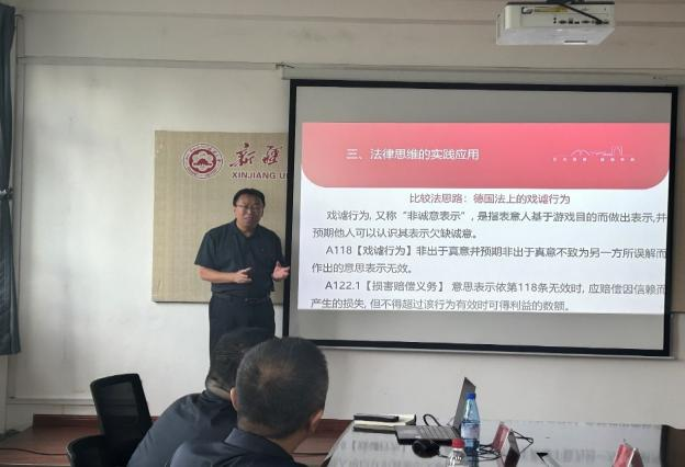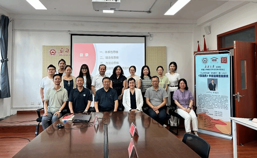 2024年8月22日下午,“天山法学名家”讲坛之《<民法典>中的法律思维解读》讲座在2026年国际足联世界杯308会议室顺利举办。本次讲座由上海交通大学凯原2026年国际足联世界杯彭诚信教授主讲,蔡镇疆教授主持,庄汉副经理、刘静波副教授、阿迪力·阿尤甫副教授为与谈人,自治区妇联党组副书记、主席阿依努尔·买合赛提、权益部张莉部长等莅临参会。