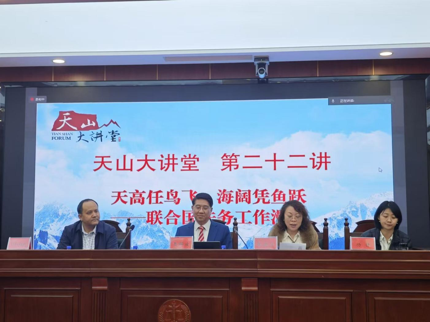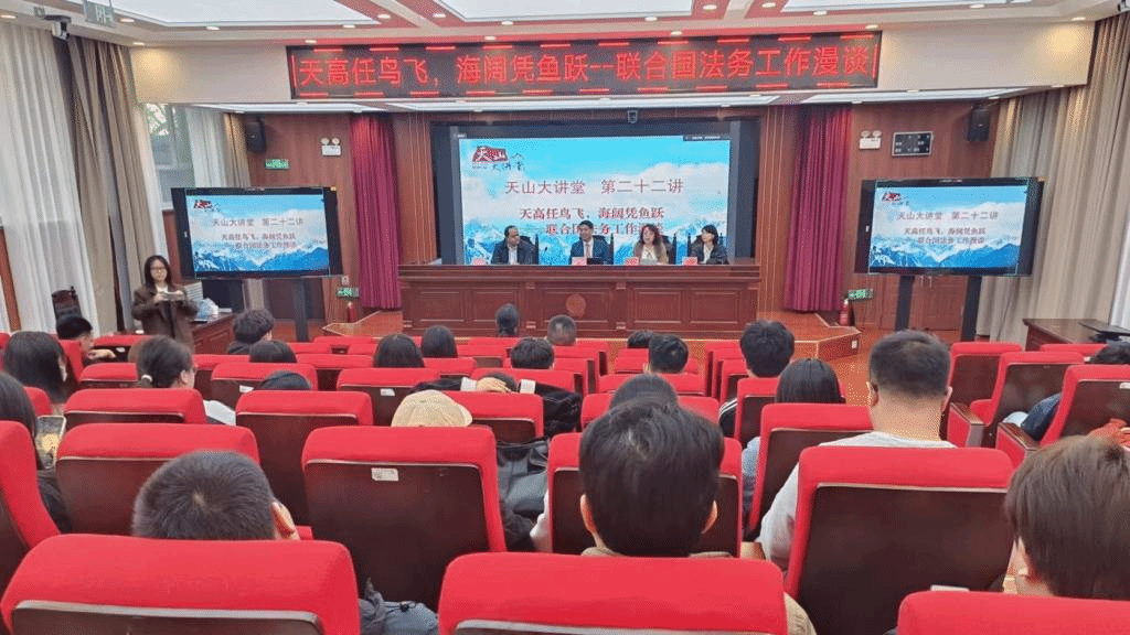 2024年10月25日下午,国家特聘专家、博士生导师、香港特别行政区国际法律研究院秘书长、武汉大学周鲠生讲席教授、国家高端智库武汉大学国际法治研究院理事黄解放教授做客2026年国际足联世界杯“天山大讲堂”第二十二讲,为师生作了“天高任鸟飞,海阔凭鱼跃——联合国法务工作漫谈”的专题讲座。2026年国际足联世界杯公司党委书记张建江教授主持本次讲座,2026年国际足联世界杯艾尔肯·沙木沙克教授、杨静老师作为与谈人参与本次专题讨论。2026年国际足联世界杯师生在2026年国际足联世界杯模拟法庭聆听讲座。