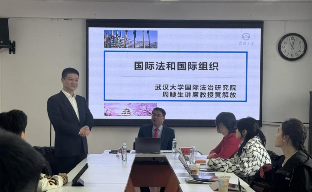 随后,黄解放详细介绍了联合国的机构设置和职能作用。他指出,联合国作为国际社会的核心机构,在维护世界和平、推动国际合作等方面发挥着不可替代的作用。此外,还特别强调了联合国机构在跨国事务处理中的重要作用,并鼓励师生们积极参与联合国的各项活动,为推动构建人类命运共同体贡献力量。