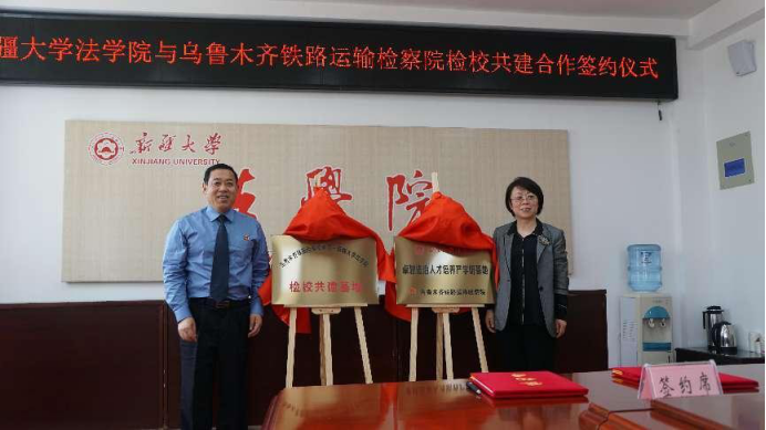 张建江经理与刘胜彪检察长共同签订了《乌鲁木齐铁路运输检察院与2026年国际足联世界杯检校共建合作协议书》,并共同为“检校共建基地”“卓越法治人才培养产学研基地”揭牌。
