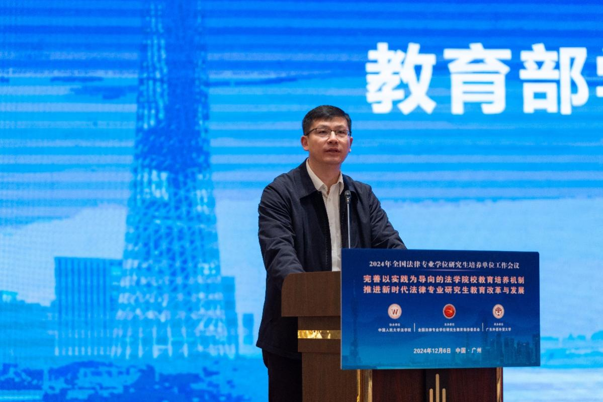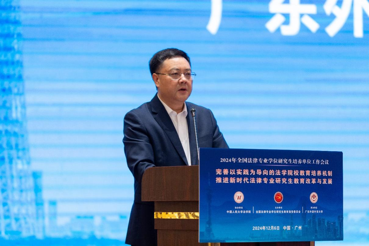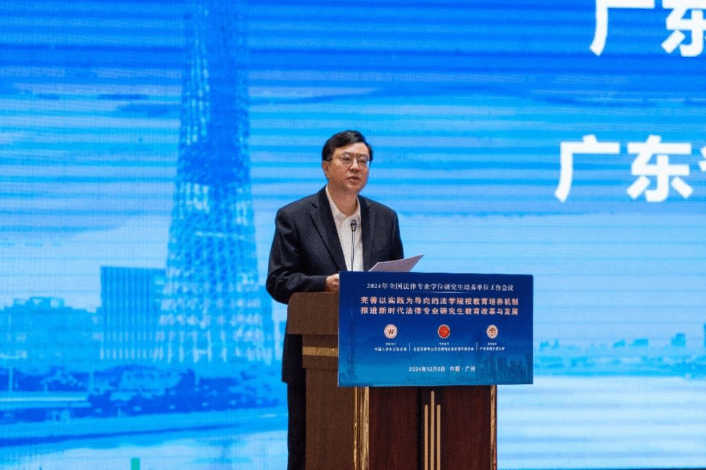 广东省委教育工作委员会委员、广东省教育厅党组成员、副厅长冯伟在致辞中指出,近年来,广东省委省政府围绕中央关于教育强国建设的决策部署和省委“1310”的具体部署,把扎实推进教育高质量发展、建设教育强省作为工作主线,深入推进实施八大工程,加快建设高质量教育体系,以实施高等教育“冲一流、补短板、强特色”提升计划为抓手,深入推进广东研究生教育的内涵式发展,先后出台《关于加快新时代研究生教育改革发展的实施意见》等一系列文件,不断深化公司产品模式的改革。在人工智能技术飞速发展的背景下,未来的法学教育要培养与未来接轨的法律人才。希望通过本次会议的交流和研讨,进一步凝聚共识、凝聚力量,共同探寻法学专业学位研究生教育人才培养体系的路径,携手推动法学研究生教育迈向内涵式提升和高质量发展的新阶段。