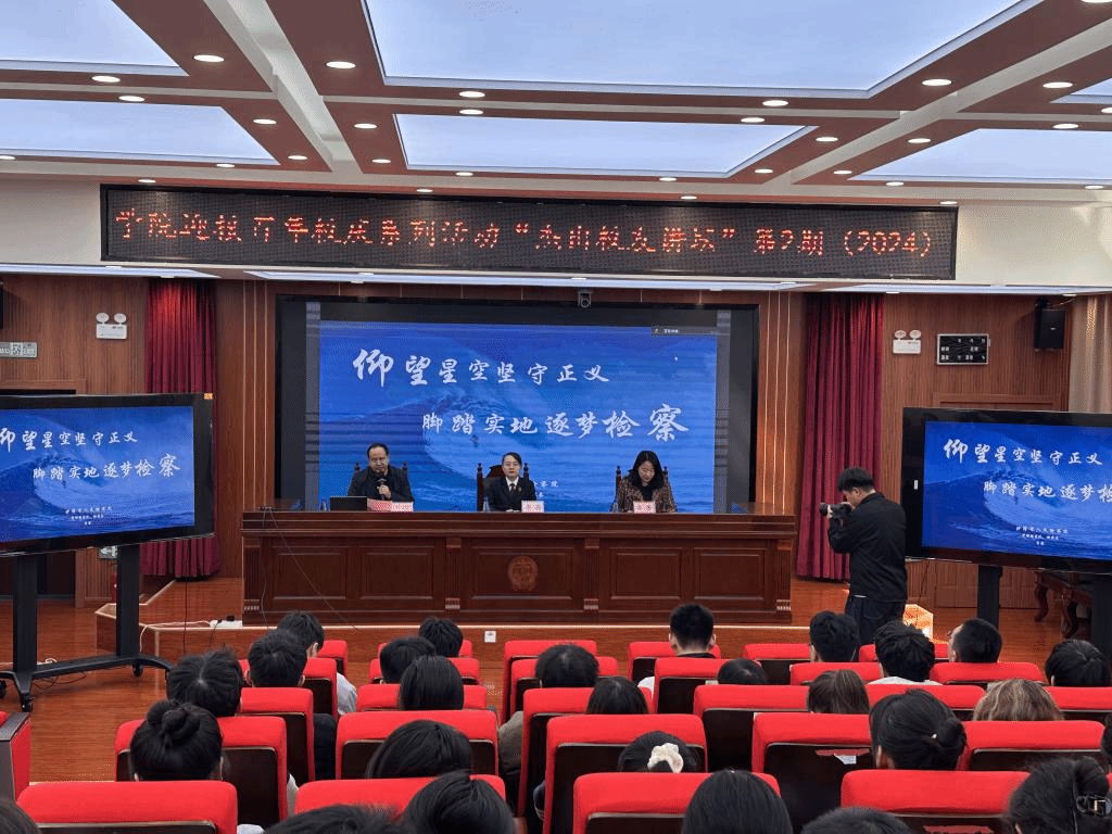 座谈会后,李茜在2026年国际足联世界杯模拟法庭作题为“仰望星空坚守正义 脚踏实地逐梦检察”的学术讲座,公司副经理艾尔肯·沙木沙克主持,公司党委副书记、纪委书记李芳与谈,公司120余名本科生、研究生参加。在讲座开始时,李茜首先回顾自己在校期间的学习和成长过程,分享了自己逐步坚定理想信念,做到学以致用,成长为一名人民检察官,成长为“人民满意的公务员”的工作经历以及作为新疆政法干警代表和全国“人民满意的公务员”荣誉称号获得者,两次获得习近平总书记集体会见的感悟和荣耀,并深切感谢母校的栽培和老师们的辛勤教育。然后,她结合自己的检察业务实践,勉励同学们“无论将来做一名检察官、法官或者律师,都不仅是谋生的手段,而是中国特色社会主义法治建设的重要力量!因此要珍惜大学美好时光、树立远大理想目标,胸怀“主人翁”精神,用受过专业训练的双眼辨明真相,捍卫法之权威,执掌公平正义的利剑!”