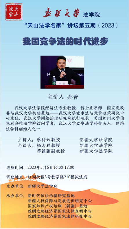 “天山法学名家”讲坛第五期(2023)——我国竞争法的时代进步