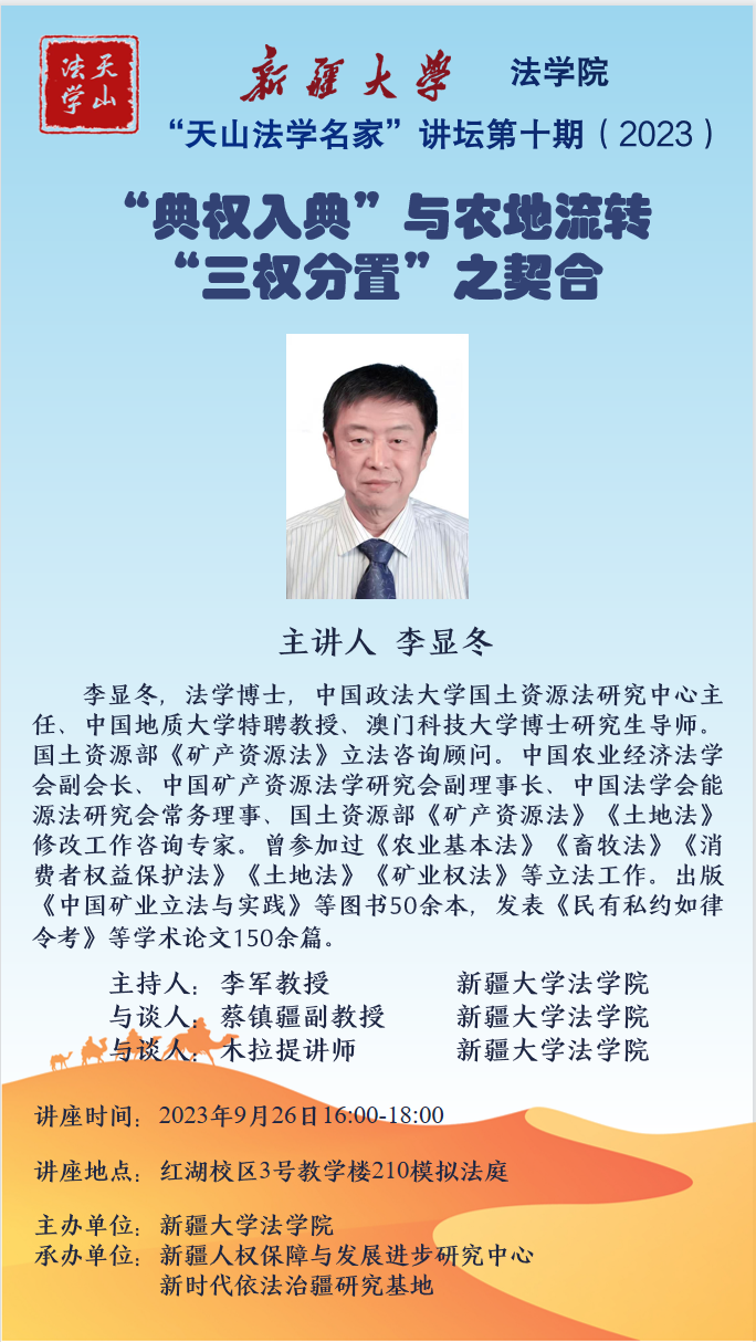 “天山法学名家”讲坛第十期(2023)——“典权入典”与农地流转“三权分置”之契合