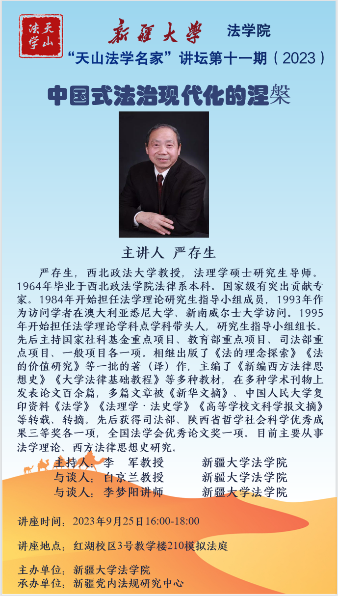“天山法学名家”讲坛第十一期(2023)——中国式法治现代化的涅槃
